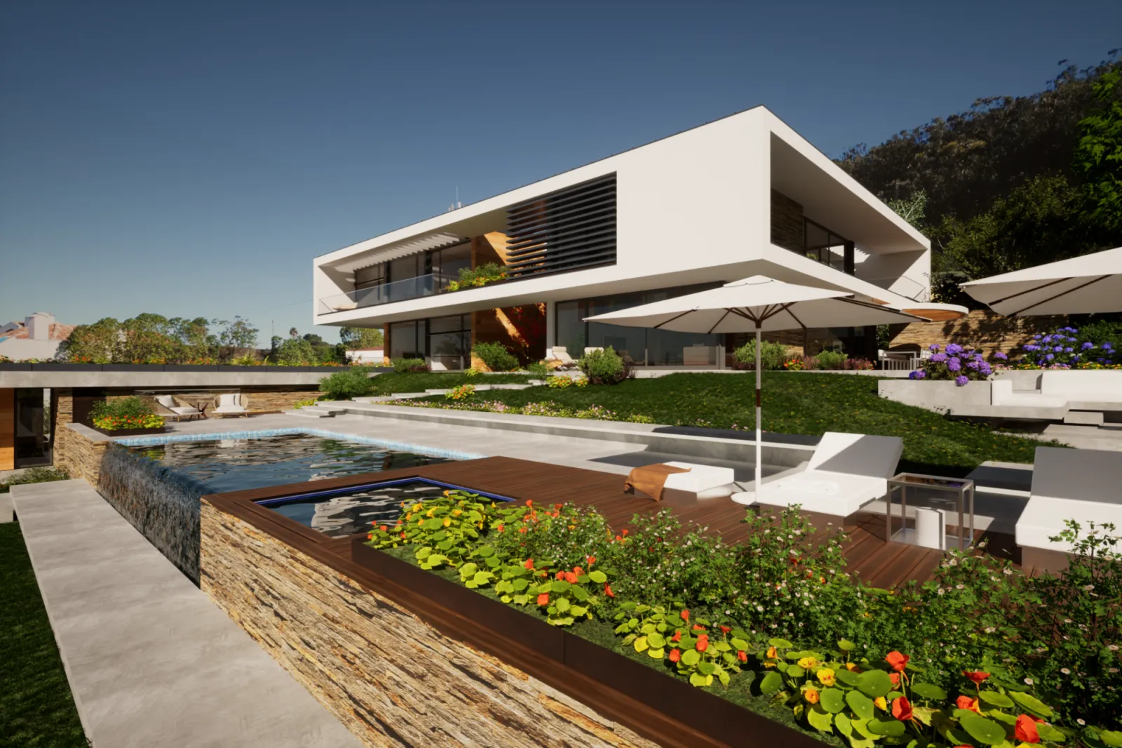 Projeto de habitação unifamiliar que, por via de um desenho conceptual forte e mediante o desenvolvimento de uma volumetria simples, busca o fortalecimento das relações visuais da habitação com a paisagem impar onde se insere.